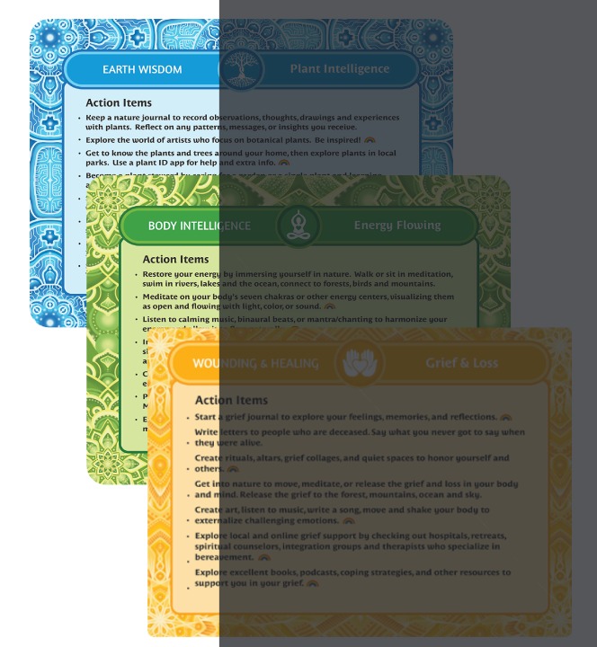 Each of the Seven Realms reflects a different dimension of the psychedelic experience and integration journey. Every card offers deep insight, inquiry, and practical steps for meaningful change.